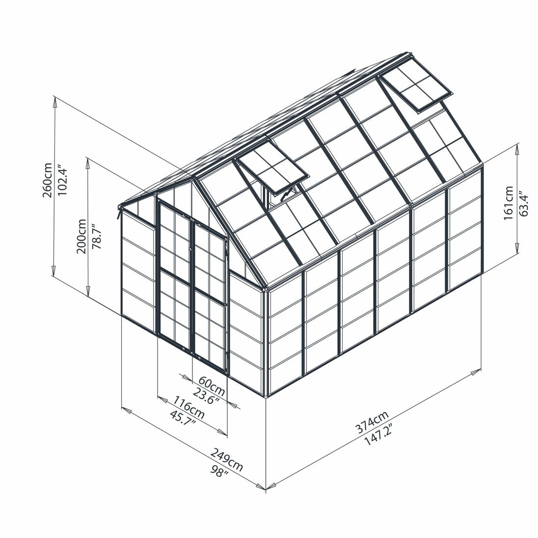 Palram - Canopia | Snap & Grow Greenhouse Kit - 8 Ft Wide - Silver With 0.8mm Polycarbonate Glazing