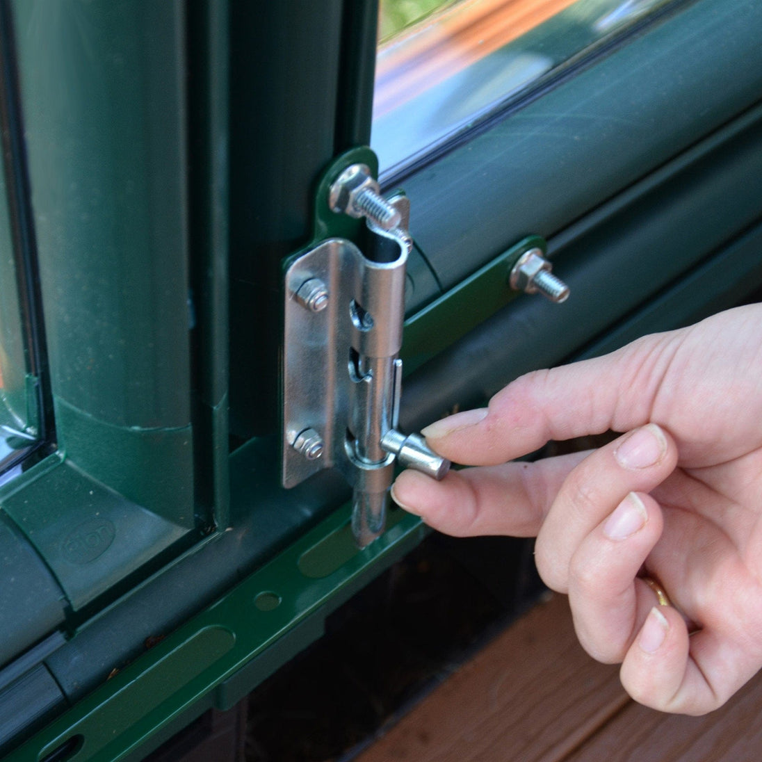 The barn style roof design provides ample headroom and gives you more space to garden. Double doors allow easy access and provide excellent ventilation. Included roof vent provides a heat vent even when the doors are closed. Secure to concrete pad or heavy timber foundation. Optional base kit may be added for additional height and extra stability.