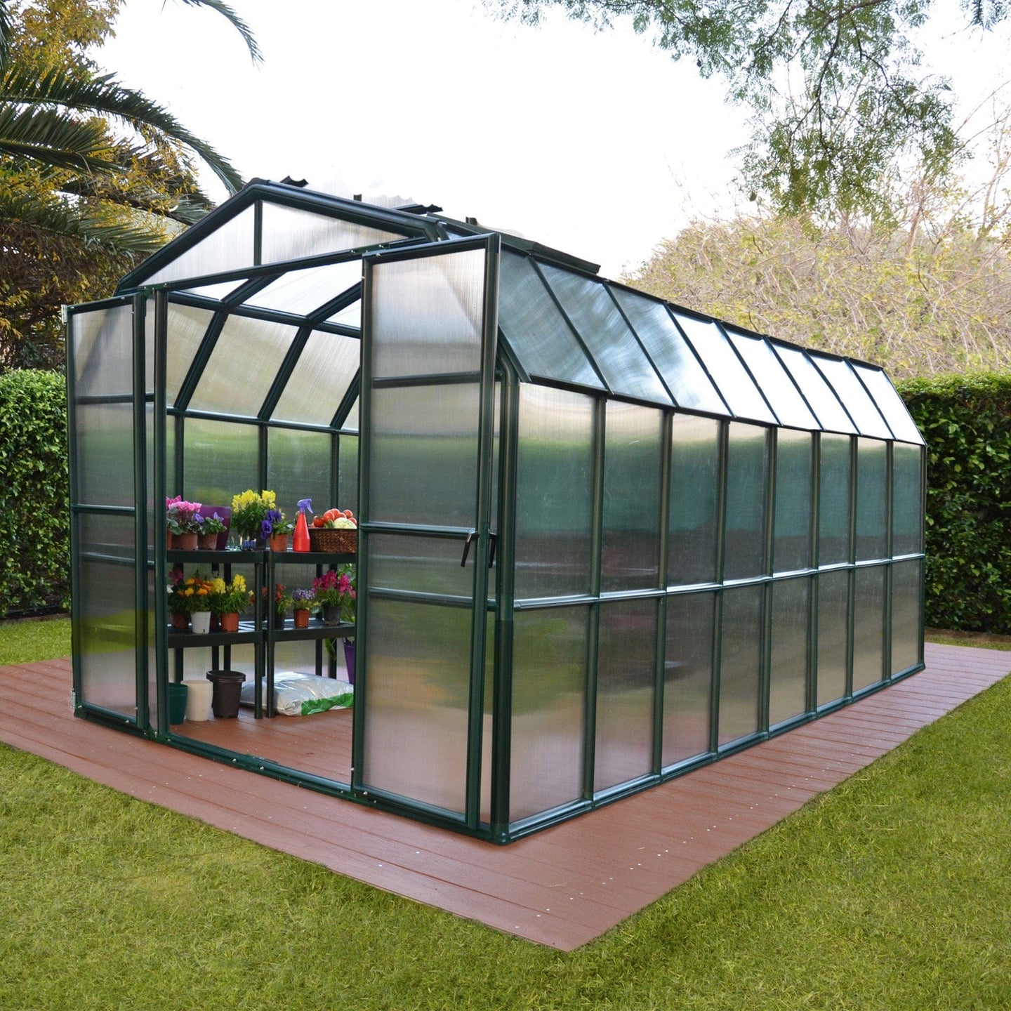 Palram - Canopia | Grand Gardener Greenhouse Kit - 8 Ft Wide - Green - 6mm Twin-wall Polycarbonate Glazing