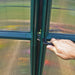 The Grand Gardener Twin-wall Greenhouse Kit is made with a heavy-duty extruded resin frame for improved insulation and durability. Virtually unbreakable twin-wall polycarbonate glazing creates a comfortable growing environment and diffuse light for even plant growth. The translucent, twin-wall polycarbonate panels also create a superb, light-weight insulation. The weatherproof frame on the Grand Gardener 2 features simplified assembly with the pin & lock system while the roof panels now simply slide into place. A barn style roof design provides ample headroom and gives you more space to garden. Double doors allow easy access and provide excellent ventilation. Included roof vent provides additional ventilation. Secure to concrete pad or heavy timber foundation. Optional base kit may be added for additional height and extra stability.