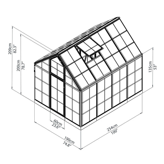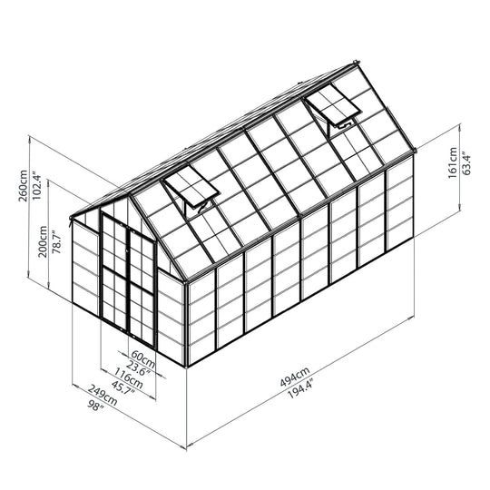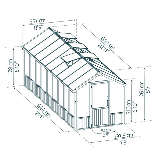 Palram - Canopia | Snap & Grow Greenhouse Kit - 8 Ft Wide - Silver With 0.8mm Polycarbonate Glazing