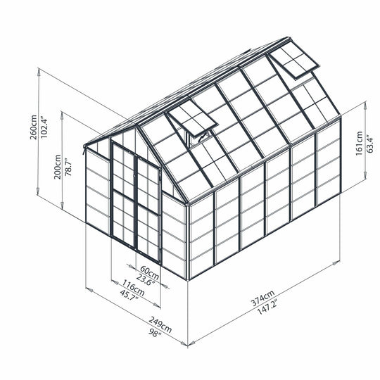 Palram - Canopia | Mythos Greenhouse Kit - 6 Ft Wide - Silver With 4mm Twin-wall Polycarbonate Glazing