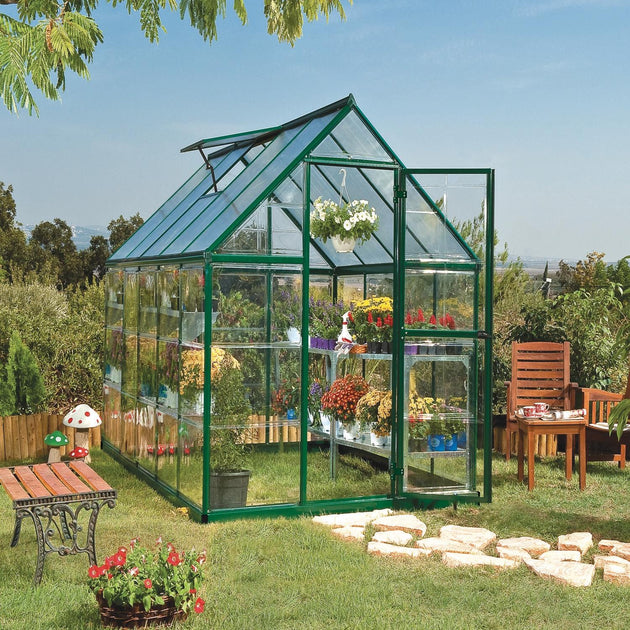 Palram - Canopia | 6X8 ft Hybrid Greenhouse Kit - Green With 0.8mm Polycarbonate Glazing
