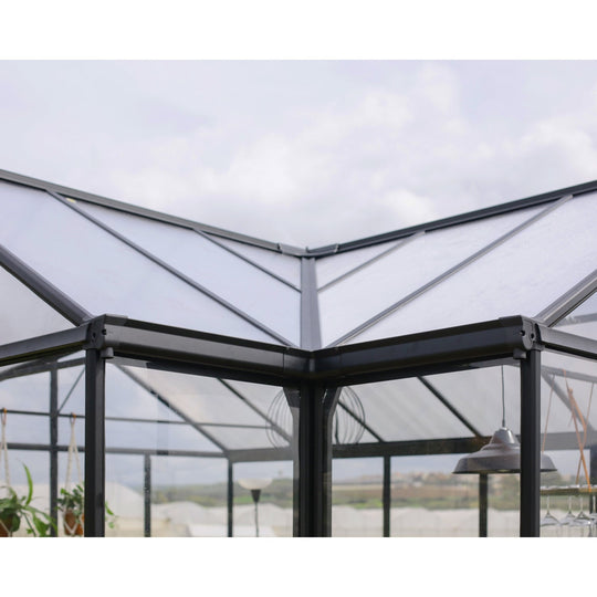 Palram - Canopia | 12x10 Ft Oasis Hex Greenhouse Kit - Gray With 0.8mm Polycarbonate Glazing