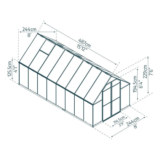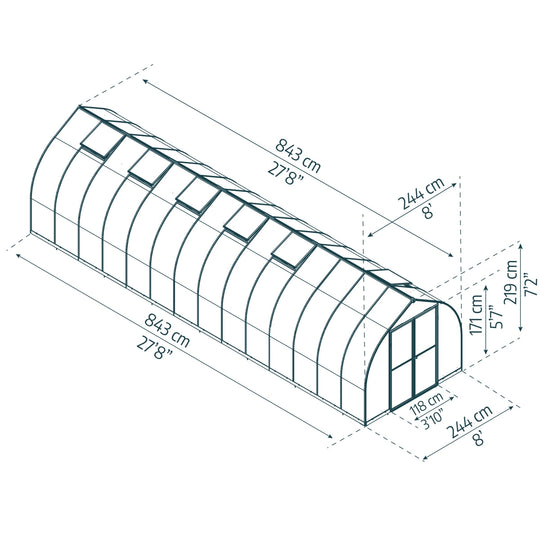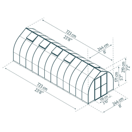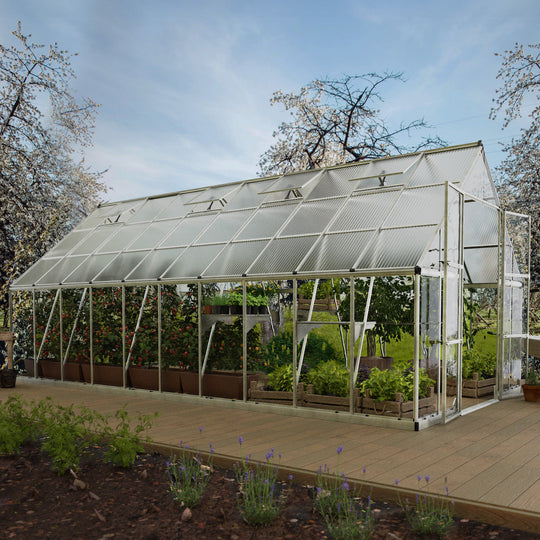 Palram - Canopia | Bella Greenhouse 8 Ft Wide - Silver With 6mm Twin-wall Polycarbonate Glazing