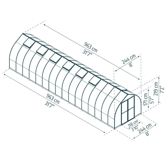 Palram - Canopia | EcoGrow Greenhouse Kit - 6 Ft Wide - Green With 6mm Twin-wall Polycarbonate Glazing