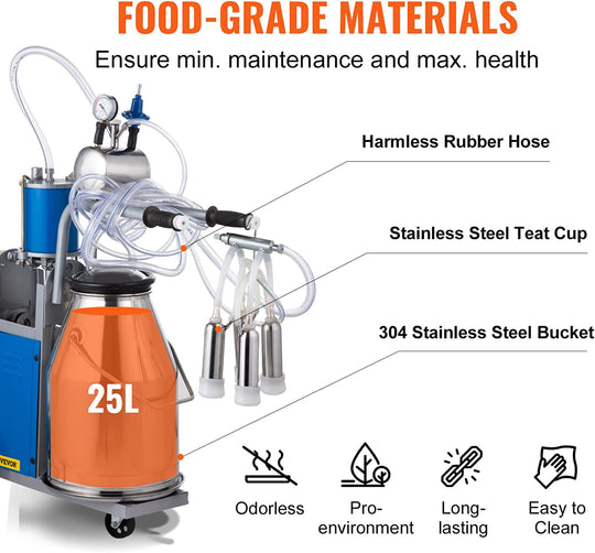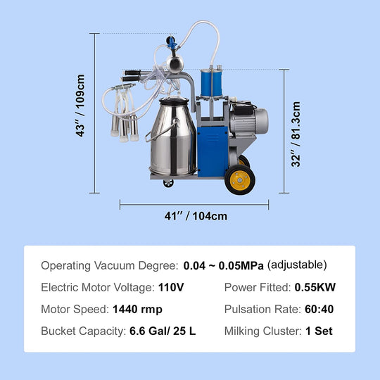 25L Electric Milking Machine I 5-8 Cows per Hour I 0.55KW 1680 RPM Milking Equipment For Cows and Goat