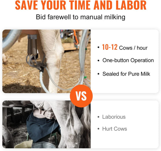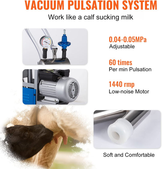 Our 6.6Gal/25L cow milking machine effective at milking your cows. With 1440 rpm motor speed and 60 times/min pulsation, it can milk 10-12 cows per hour, providing you with a labor-saving and time-saving milking experience. Let's...Sale price $1,050.00Regular price $1,100.00Sale price $1,050.00Regular price $1,100.00 -