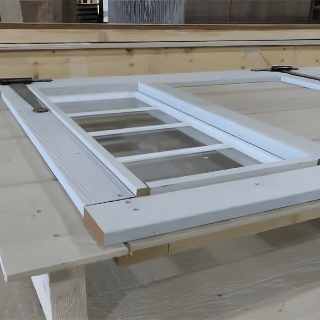- Rafters, roof sheathing, pre-hung doors, trim, door hardware, fasteners