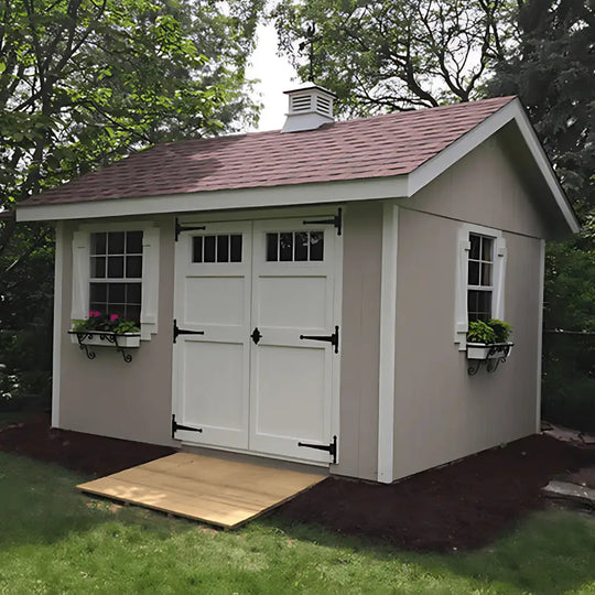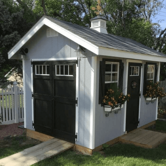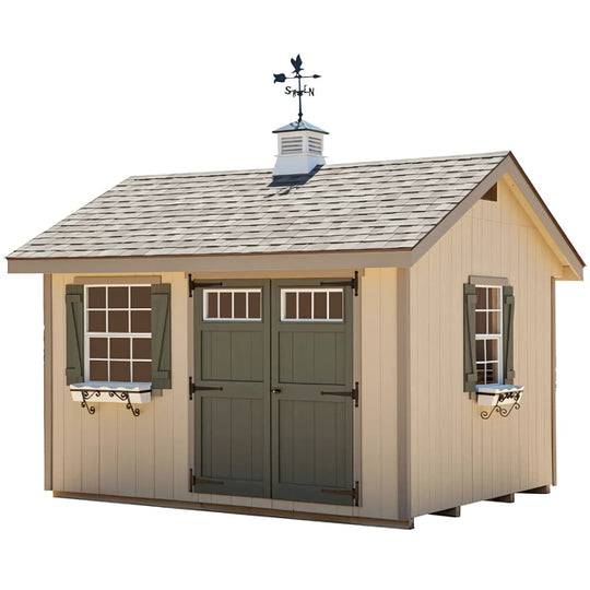 Sale                                     Vendor: EZ-Fit EZ-Fit Homestead Shed Kit Why Choose the Ez-Fit Homestead Shed Kit? This Homestead model includes transom windows in the double door and the single door. It does not include the cupola (white structure on the roof), weathervane, or flower boxes. Looking for a shed...Sale price From $3,499.00Regular price $3,999.00Sale price From $3,499.00Regular price $3,999.00