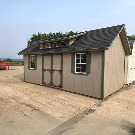 Sale                         Vendor: EZ-Fit EZ-Fit Heritage Shed Kit Need a Strong and Stylish Shed? Check Out the EZ-FIT Heritage Shed Kit! This Heritage model includes transom windows in the double door and the single door. It does not include the cupola (white structure on...Sale price From $3,499.00Regular price $4,437.00Sale price From $3,499.00Regular price $4,437.00